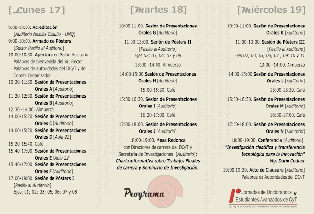 Estimados expositores les pedimos a todos que se acerquen a colgar el póster el lunes por la mañana de 9 a 10 hs., como indica el programa. Una vez que se acreditan ya pueden ir al lugar dispuesto para su poster.